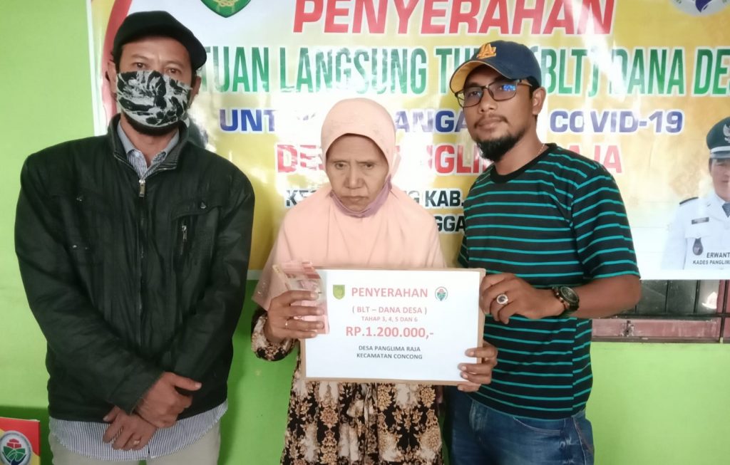 PLH Kades Panglima Raja, Rahman, S.Pd.I mengatakan, penyerahan BLT DD kepada 261 KPM tersebut merupakan bentuk tanggung jawab Pemerintah Desa yang mengacu kepada Peraturan Menteri Desa Pembangunan Daerah Tertinggal dan Transmigrasi Republik Indonesia Nomor 6 Tahun 2020 Tentang Prioritas Penggunaan Dana Desa Tahun 2020.