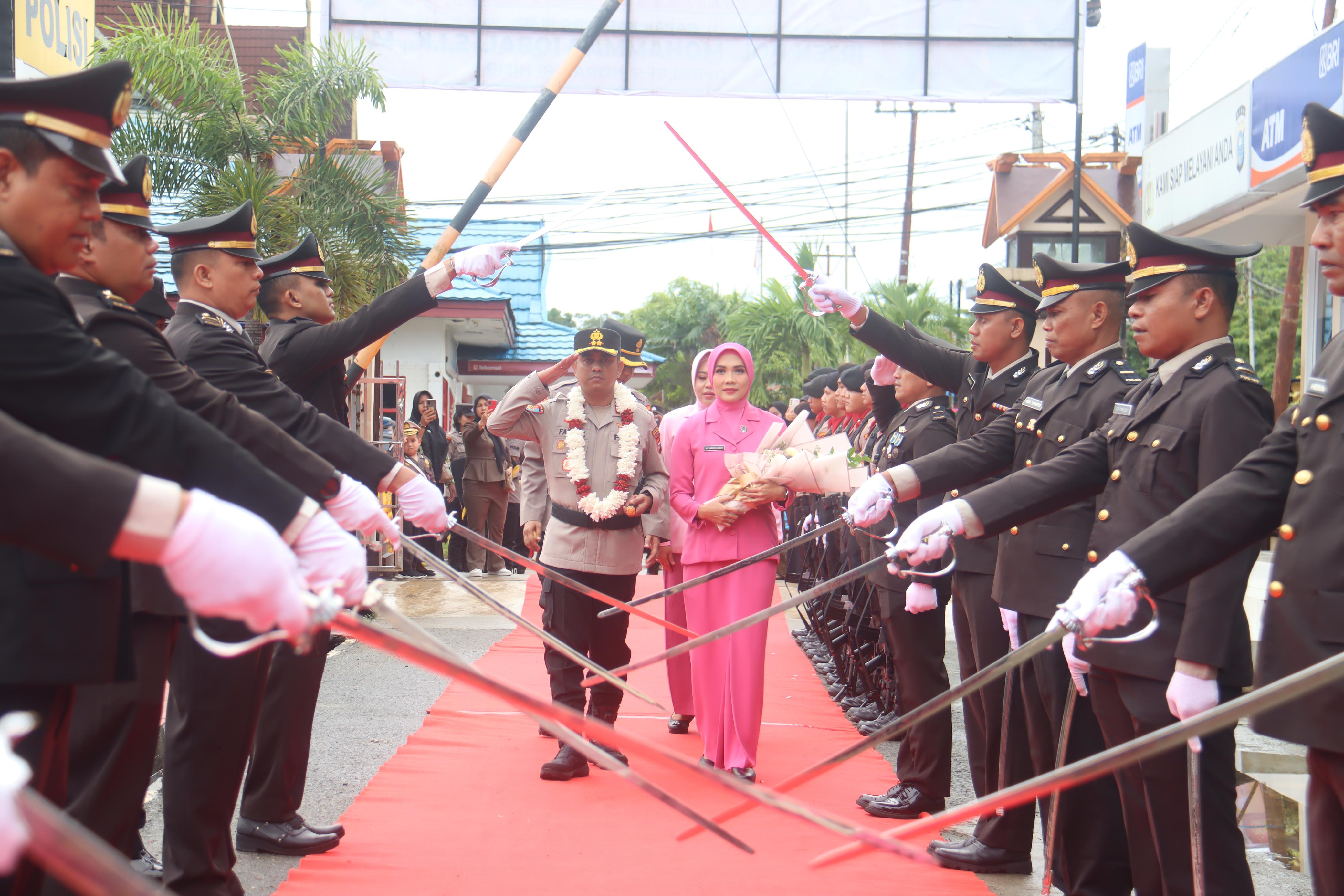 Budi yang didampingi sang istri mengucapkan terima kasih atas dukungan seluruh personel Polres Inhil, sehingga dirinya bisa menjalankan tugas dengan sebaik-baiknya.
