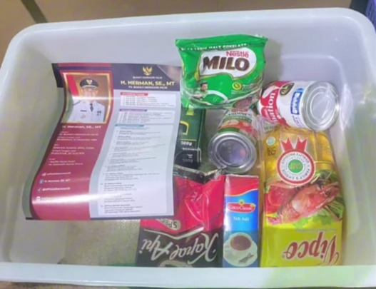 Asumsi bahwa pengadaan paket hanya bermuatan politik diperkuat dengan adanya brosur profil Pejabat Bupati Inhil Herman di dalam box paket sembako.