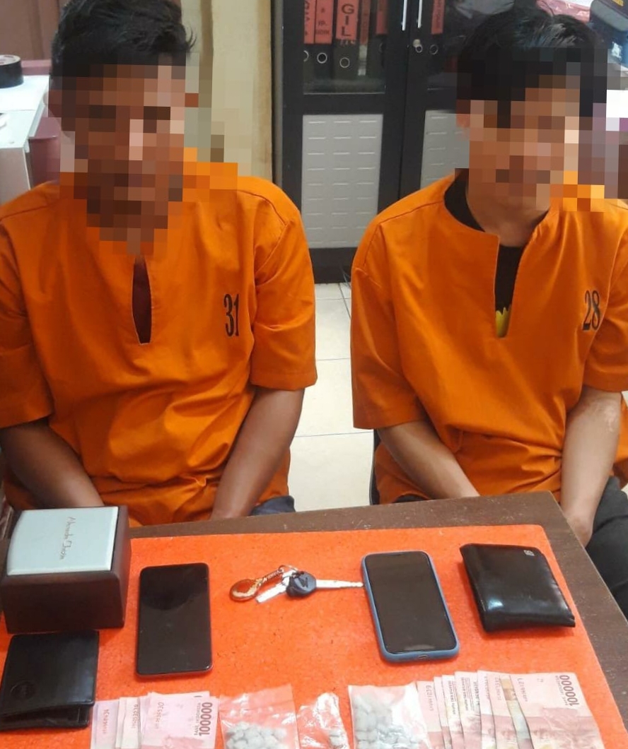“Setelah dilakukan penggeledahan dengan disaksikan oleh RT setempat dan Satpam Karaoke, ditemukan 2 (dua) butir ekstasi merk Kenzo dibawah jok sepeda motor dan uang tunai sebesar 800 ribu,” tutur Warno melalui keterengan tertulis, Kamis (11/3/2021).