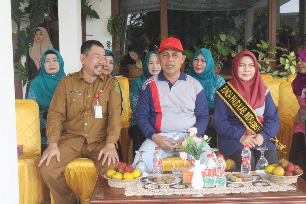 PJ. Bupati Indragiri Hilir H. Herman didampingi Bunda PAUD Inhil Hj. Katerina Susanti menerima kunjungan PAUD, Selasa (30/1/2024).