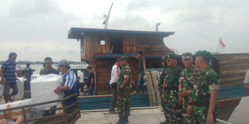 Tembilahan.mediaekspres.. Co. Komandan Kodim (Dandim) 0314/Inhil Letkol Inf Fikky Nur Kuncoro Jati, S.H., M. Han., meninjau proses pendistribusian logistik Pemilihan Umum (Pemilu) tahun 2024 di Dermaga Kodim 0314/Inhil, Rabu (7/2/2024).
