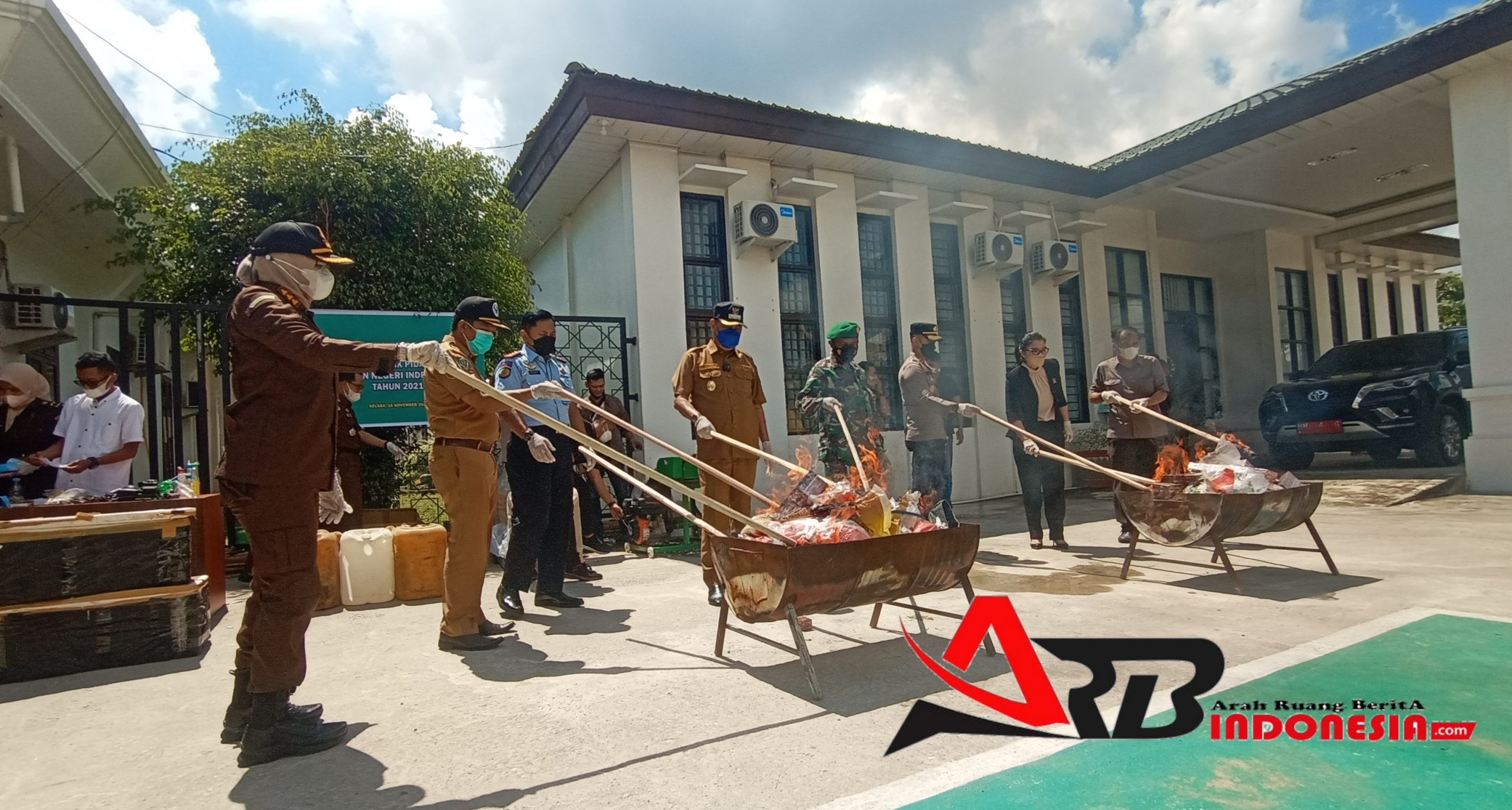 ARBIndonesia.com, INDRAGIRI HILIR – Kejaksaan Negeri Kabupaten Indragiri Hilir (Inhil) melaksanakan kegiatan pemusnahan barang bukti yang merupakan barang hasil putusan dari Pengadilan Negeri Tembilahan, Selasa (16/11/2021).