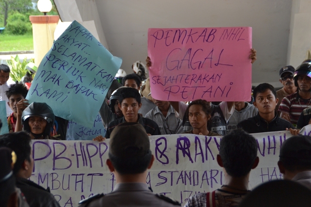 Sayangnya desakan massa untuk ditemui secara langsung oleh Bupati Inhil, H. Indra Muchlis Adnan setelah berjam-jam menunggu tidak juga membuahkan hasil. Dikabarkan Bupati saat itu sedang berada di Kecamatan Pulau Kijang. Unjuk rasa di Halaman kantor Bupati Inhil ini massa hanya ditemui oleh Asisten II Setdakab Inhil, H.Syafrinal Hedi didampingi oleh Perwakilan Dinas Perindustrian dan Perdagangan, Raja Taruna.