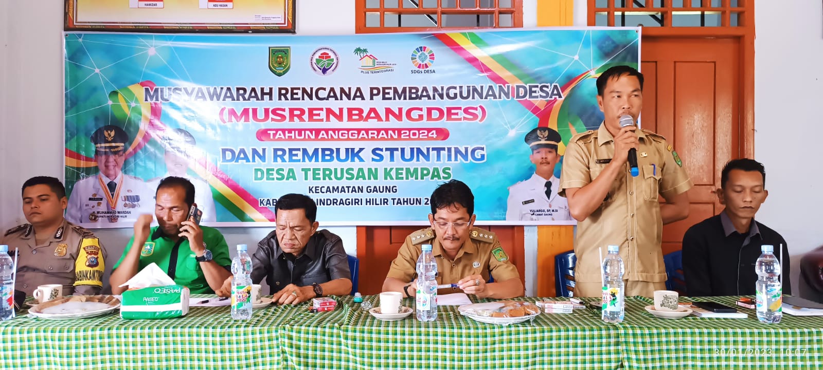 ARB INdonesia, INDRAGIRI HILIR – Camat Gaung, Yuliargo SP hadiri Musyawarah Perencanaan Pembangunan (Musrenbang) dan rembuk Stunting di Desa Terusan Kempas, Kecamatan Gaung, Kabupaten Indragiri Hilir, Provinsi Riau.