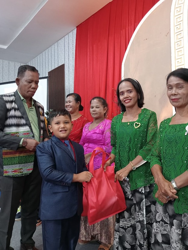 Penyerahan tali kasi kasih bingkisan natal diserahkan pada saat perayaan natal GBI Love Tembilahan di Hotel Top 5 Tembilahan Sabtu (7/12/2024) malam.
