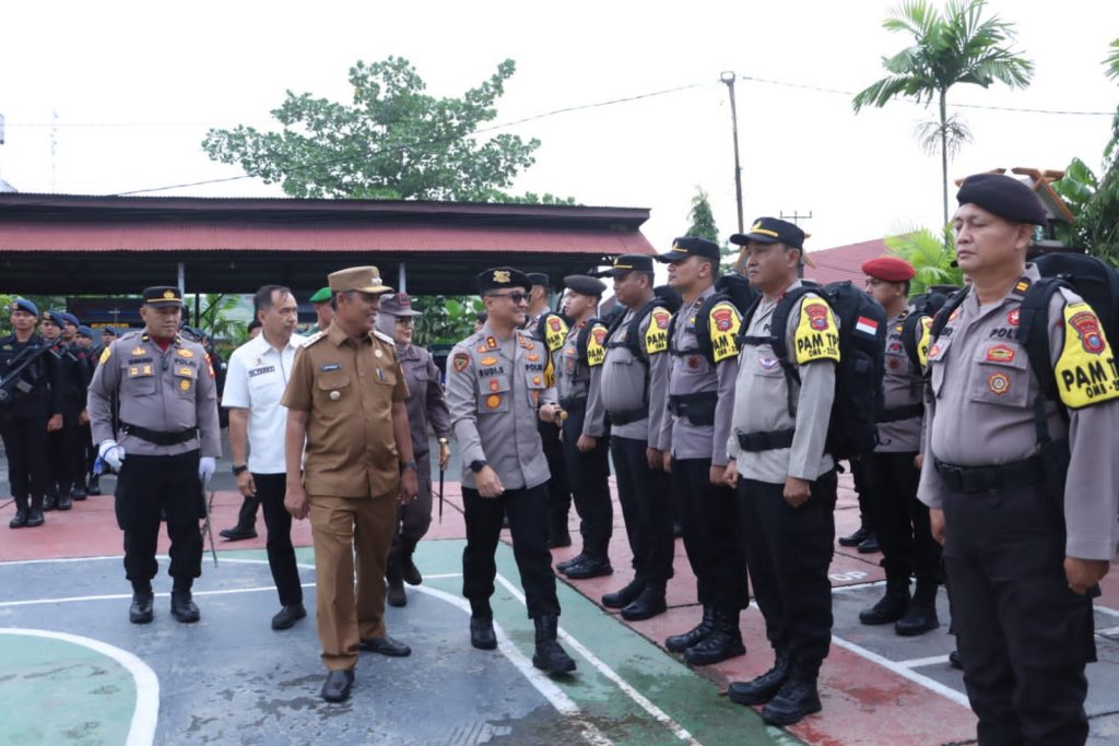 Tembilahan.mediaekspres.co,- Pj.Bupati H.Herman mengikuti apel pergeseran pasukan pengamanan tahapan pemungutan suara pemilu tahun 2024 di halaman Polres Inhil, Senin (12/2/2024) pagi dan turut juga di hadiri Ketua DPRD, Ketua KPU, Unsur Forkopimda, Ketua Bawaslu dan Pejabat eselon dilingkungan Pemkab Inhil.