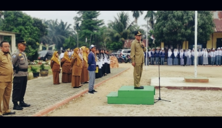 ARB INdonesia, INDRAGIRI HILIR – Kepala Badan (Kaban) Kesbangpol Kabupaten Indragiri Hilir (Inhil) menjadi pembina upacara bendera di Sekolah Menengah Atas Negeri Dharma Pendidikan di Kecamatan Kempas, Senin (28/8/2023).