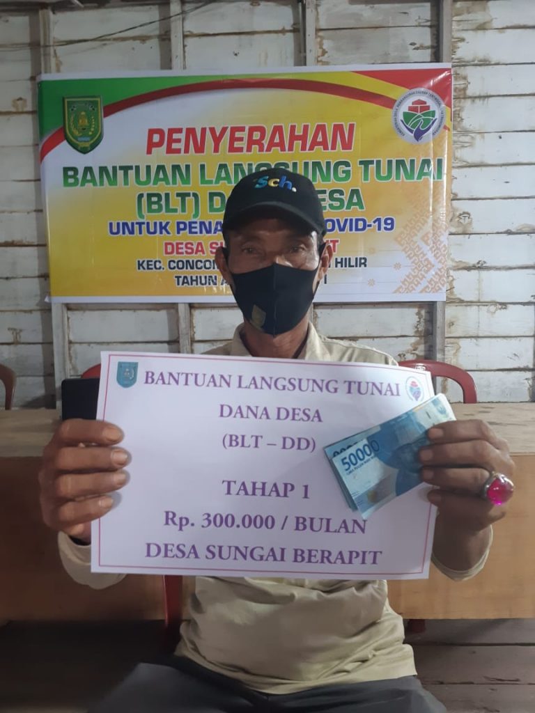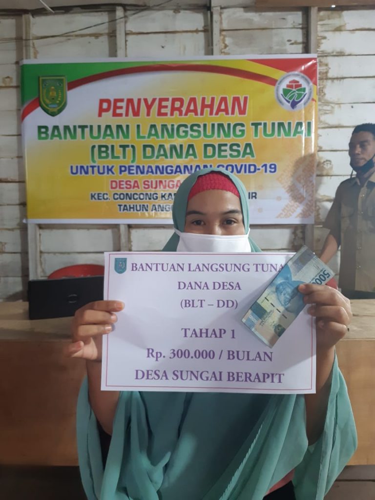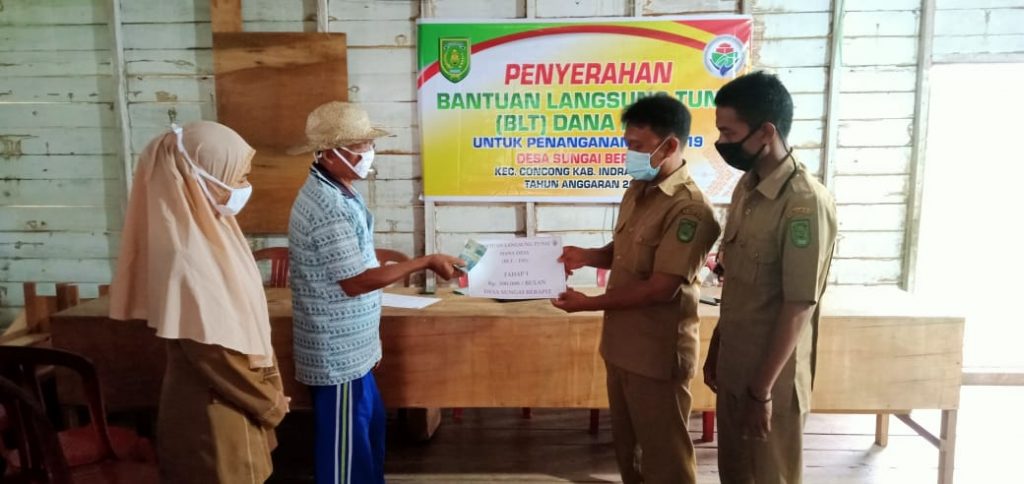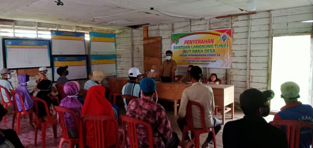 Setelah menerima transfer dana, sehari menjelang lebaran Idul Fitri 1442 H, Pemerintah Desa Sungai Berapit, Kecamatan Concong-Inhil mulai melakukan penyaluran Bantuan Langsung Tuna (BLT- Dana Desa) tahap pertama secara transparan, Selasa (12/5/2021).