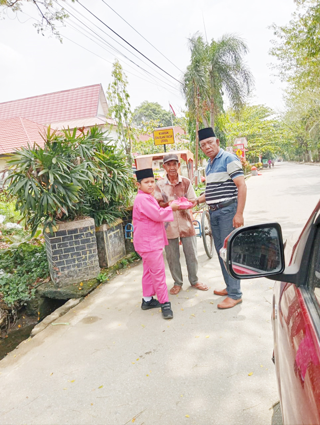 Tembilahan.mediaekspres.co. pimpinan media investigasi yang juga direktur PT Media Investigasi Terkini Jannes Hutagalung bersama putranya Aden bagus Wildan Hutagalung berbagi makan dengan masyarakat Tembilahan Jumat (6/2/2026) di Tembilahan.