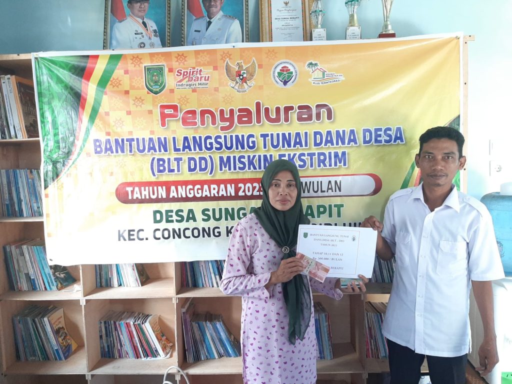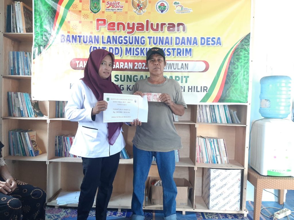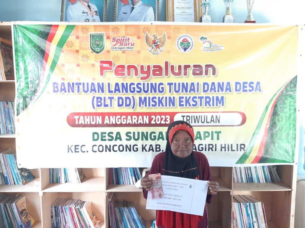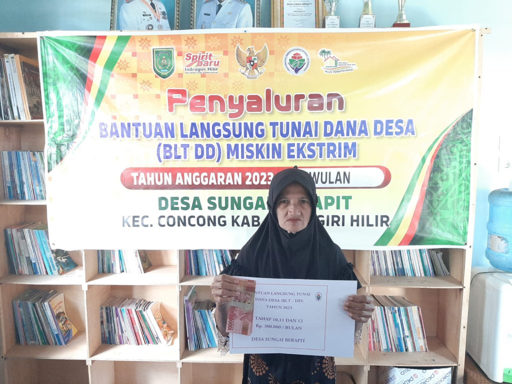 ARBIndonesia.com, INDRAGIRI HILIR – Pemerintah Desa Sungai Berapit, Kecamatan Concong, Kabupaten Indragiri Hilir (Inhil) menyerahkan Bantuan Langsung Tunai Dana Desa (BLT-DD) untuk tahap akhir di tahun 2023, Rabu (15/11/2023).