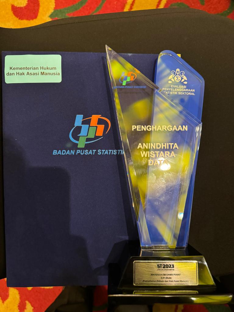 Kemenkumham mendapatkan anugerah tersebut dalam program Evaluasi Penyelenggaraan Statistik Sektoral (EPSS) tahun 2023, untuk kategori kementerian dengan indeks pembangunan predikat BAIK, dengan indeks 3,21 dari skala penilaian 1 – 5.