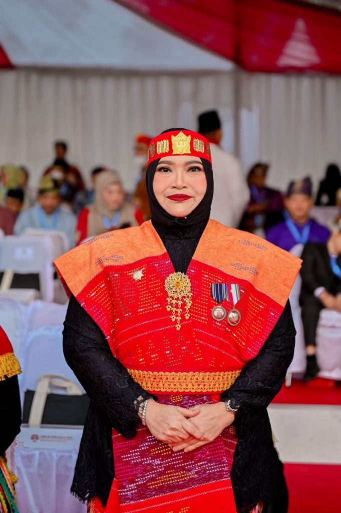 Kenakan Pakaian Adat Batak Toba, Bupati Bengkalis Ikuti Upacara Harlah Pancasila