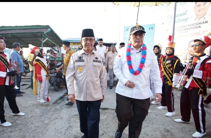 ARB INdonesia, INDRAGIRI HILIR – Bupati Inhil HM WARDAN didampingi Ketua Tim Penggerak PKK Inhil Hj.Zulaikhah, menyambut kedatangan Wakil Menteri Pertanian Republik Indonesia yang melaksanakan kunjungan kerja di kecamatan Reteh, Selasa (22/08/2023) sore.