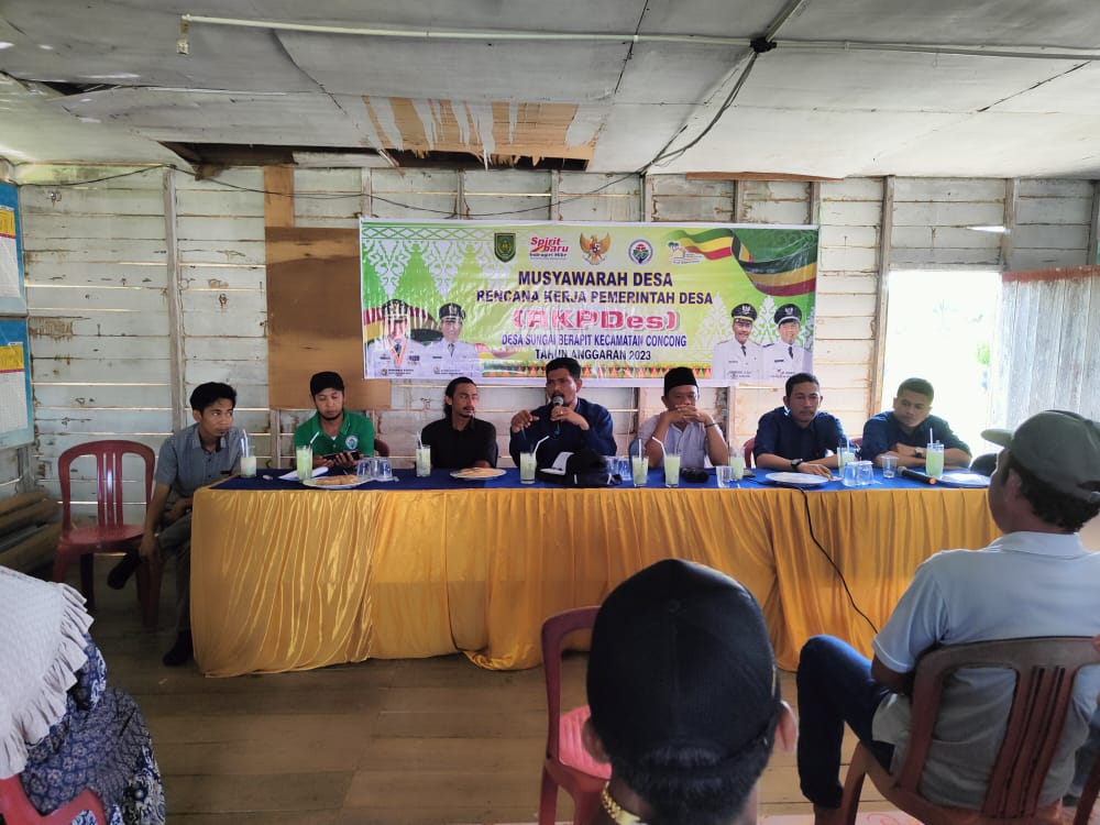ARB INdonesia, INDRAGIRI HILIR – Pemerintah Desa (Pemdes) Sungai Berapit, Kecamatan Concong, Kabupaten Indragiri Hilir (Inhil) menggelar Musyawarah Desa Rencana Kerja Pemerintah Desa (MD-RKPDes) Tahun anggaran 2023, Kamis (11/8/2022).