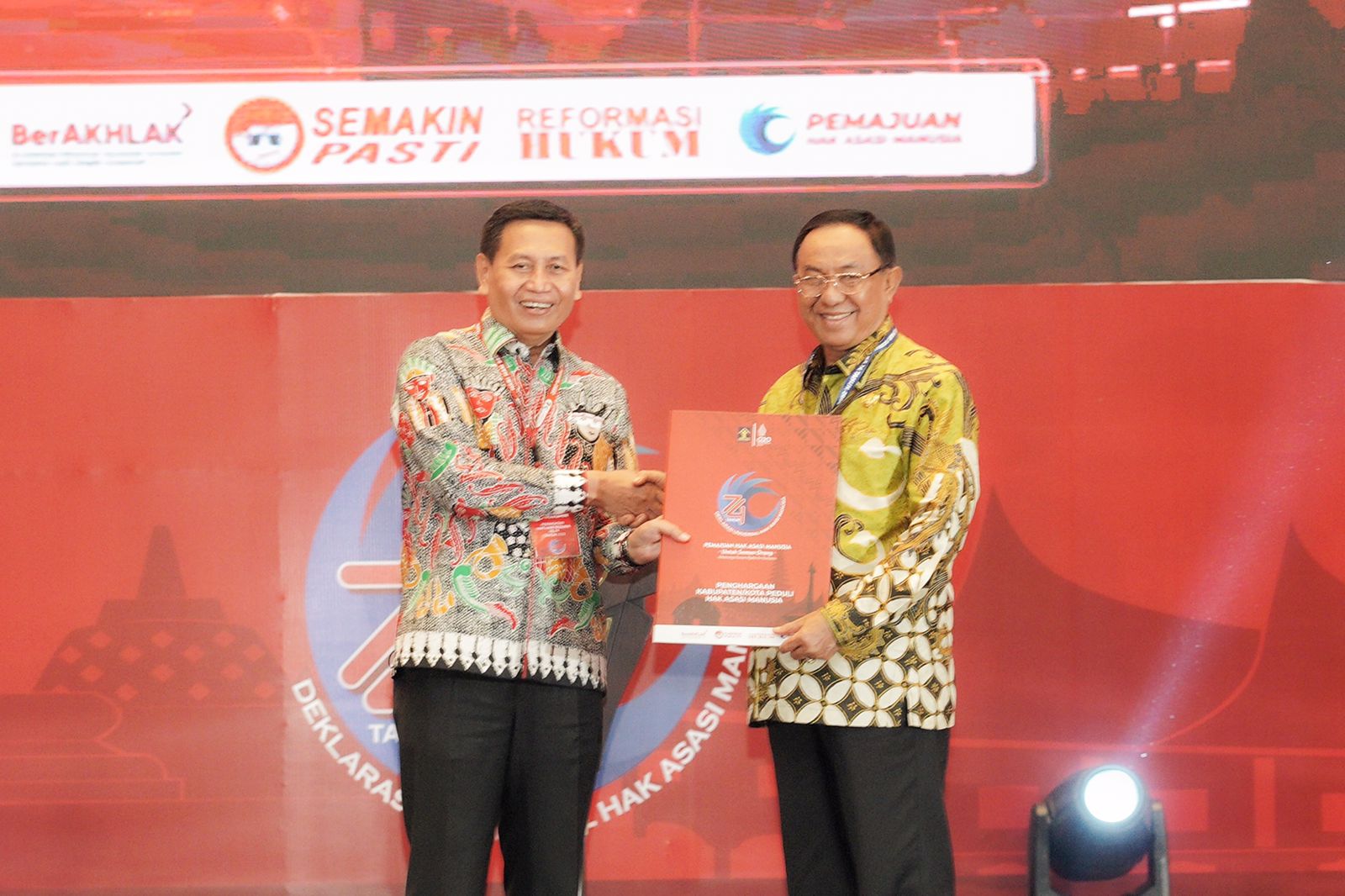 Dalam sambutannya, Wakil Presiden RI K.H. Ma’ruf Amin menggarisbawahi bahwa segala capaian yang telah diraih dalam pemajuan HAM tidak membuat kita puas sampai dititik ini saja. Melainkan menjadi batu loncatan untuk menggapai sasaran yang lebih tinggi lagi dalam rangka pemenuhan HAM bagi seluruh rakyat Indonesia.