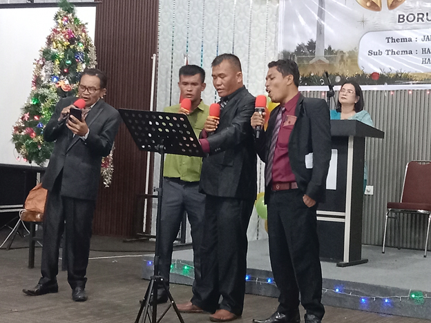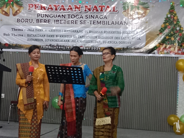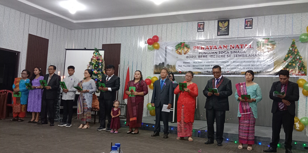 Tembilahan.mediaekspres.co.. Ketua Punguan Marga Guru Mangaloksa (PGM) tembilahan Jannes Hutagalung bersama Sekretaris dan Bendahara J Siahaan berserta kumpulan marga-marga yang ada di Tembilahan menghadiri natal Punguan Toga Sinaga Tembilahan yang dialksanakan di Hotel Top 5 Tembilahan Sabtu (14/12/2024) malam dengan Thema diambil dari Ayat Alkitab Kolose 3.15. Hendaklan Damai Sejahtera Kristus Memerintah Dalam hatimu, Karena Untuk Tilah Kamu Telah Dipanggil Menjadi Satu Tubuh. Dan bersyukur.