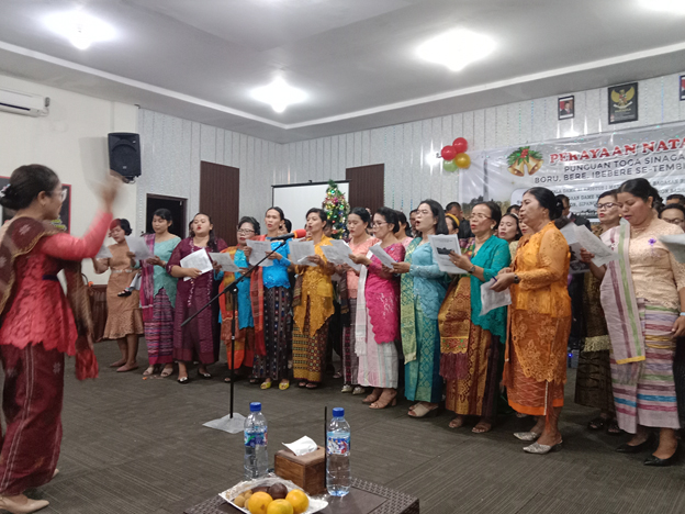 Sebelum pelaksanaan perayan natal muda-mudi punguan toga Sinaga mempilkan tarian tortor batak dalam prosesi pertanda dimulainya kebaktian.