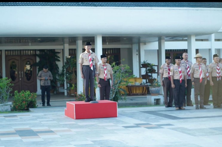 Dalam kesempatan ini juga Bupati mengintruksikan kepada semua pejabat agar di setiap tanggal 14 kembali memakai pakaian pramuka.