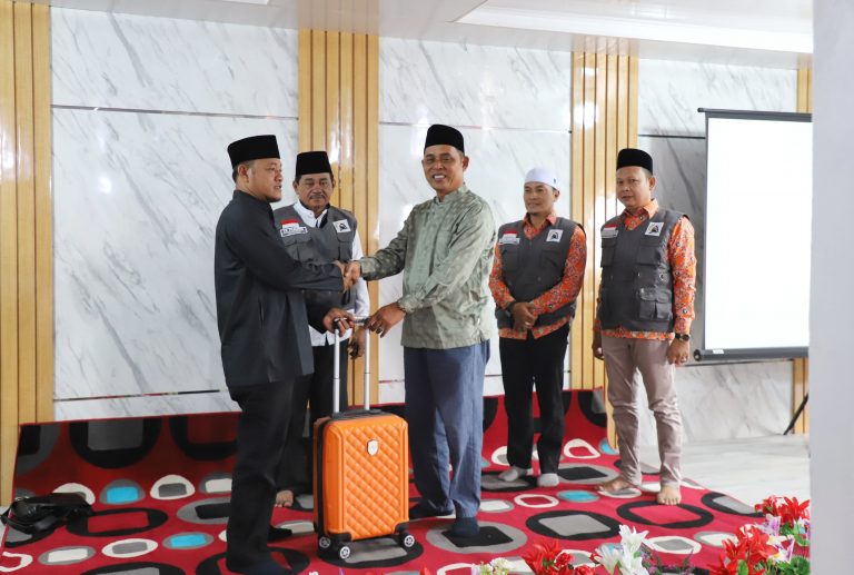 Pj Bupati Herman saat melepas para Jama’ah umrah sesaat sebelum menuju Tanah Suci mengucapkan selamat kepada para calon Jama’ah yang akan menjalankan Ibadah umrah.