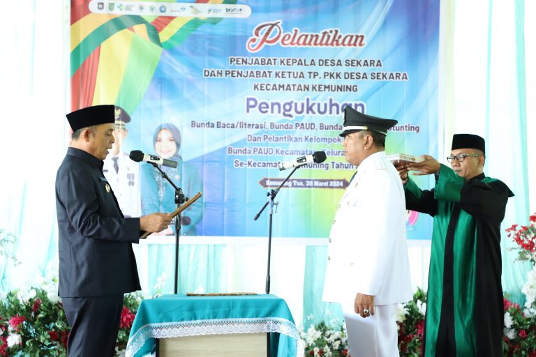 Kemuning, mediaekspres. Co. -Guna mengisi kekosongan kepemimpinan kepala desa, maka Penjabat Bupati Indragiri Hilir H. Herman melantik dan mengambil sumpah jabatan Penjabat (Pj) Kepala Desa Sekara Kecamatan Kemuning, Indragiri Hilir, Sabtu, (30/03/2024).