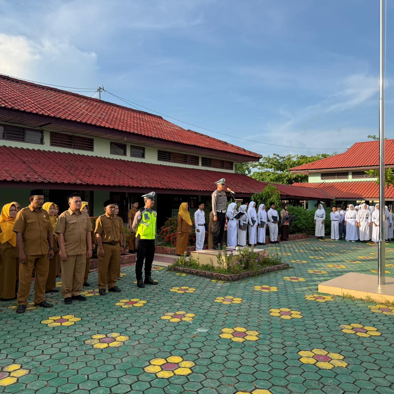 Kegiatan yang dimulai pukul 07.00 WIB tersebut diisi dengan peran sebagai pembina upacara sekaligus penyampaian pesan-pesan keselamatan berlalu lintas kepada para siswa-siswi. Selain itu, dilakukan pula sosialisasi terkait pentingnya memahami aturan lalu lintas sejak dini guna menekan angka pelanggaran dan kecelakaan di kalangan pelajar.
