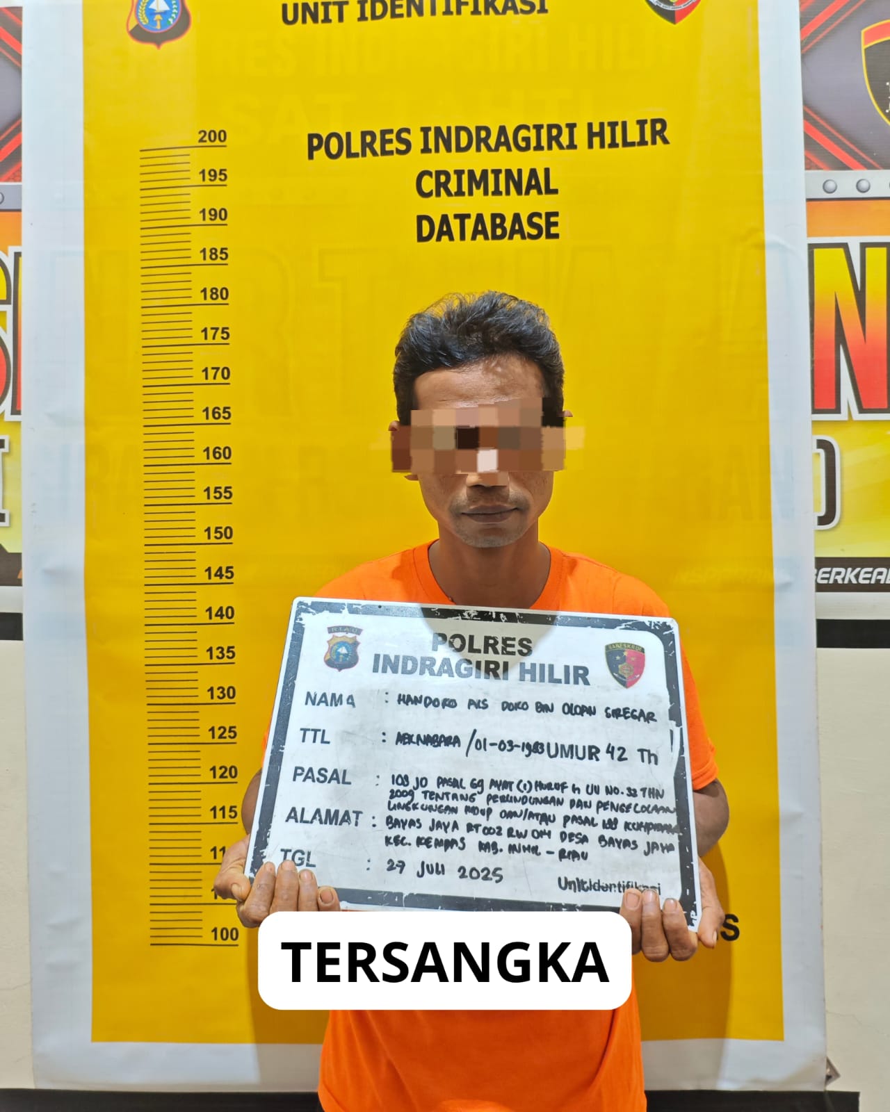 Tembilahan, mediaekspres. Co. Kepolisian Resor Indragiri Hilir (Polres Inhil) kembali menunjukkan komitmennya dalam menjaga kelestarian lingkungan. Kali ini, seorang pria berinisial (H.alias D) (42) ditetapkan sebagai tersangka dalam kasus pembakaran lahan gambut seluas 5 hektare yang terjadi di Dusun Teluk Bagus, Desa Bayas Jaya, Kecamatan Kempas, Kabupaten Indragiri Hilir, Riau.