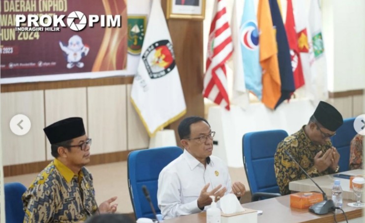 ARB INdonesia, INDRAGIRI HILIR – Bupati Kabupaten Indragiri Hilir (Inhil) HM Wardan melaksanakan penandatanganan Naskah Perjanjian Hibah Daerah (NPHD) antara Pemerintah Kabupaten Inhil dengan KPU dan Bawaslu Inhil, Jum’at (10/11/2023) disaksikan oleh K9etua KPU Provinsi Riau Ilham Muhammad Yasir.