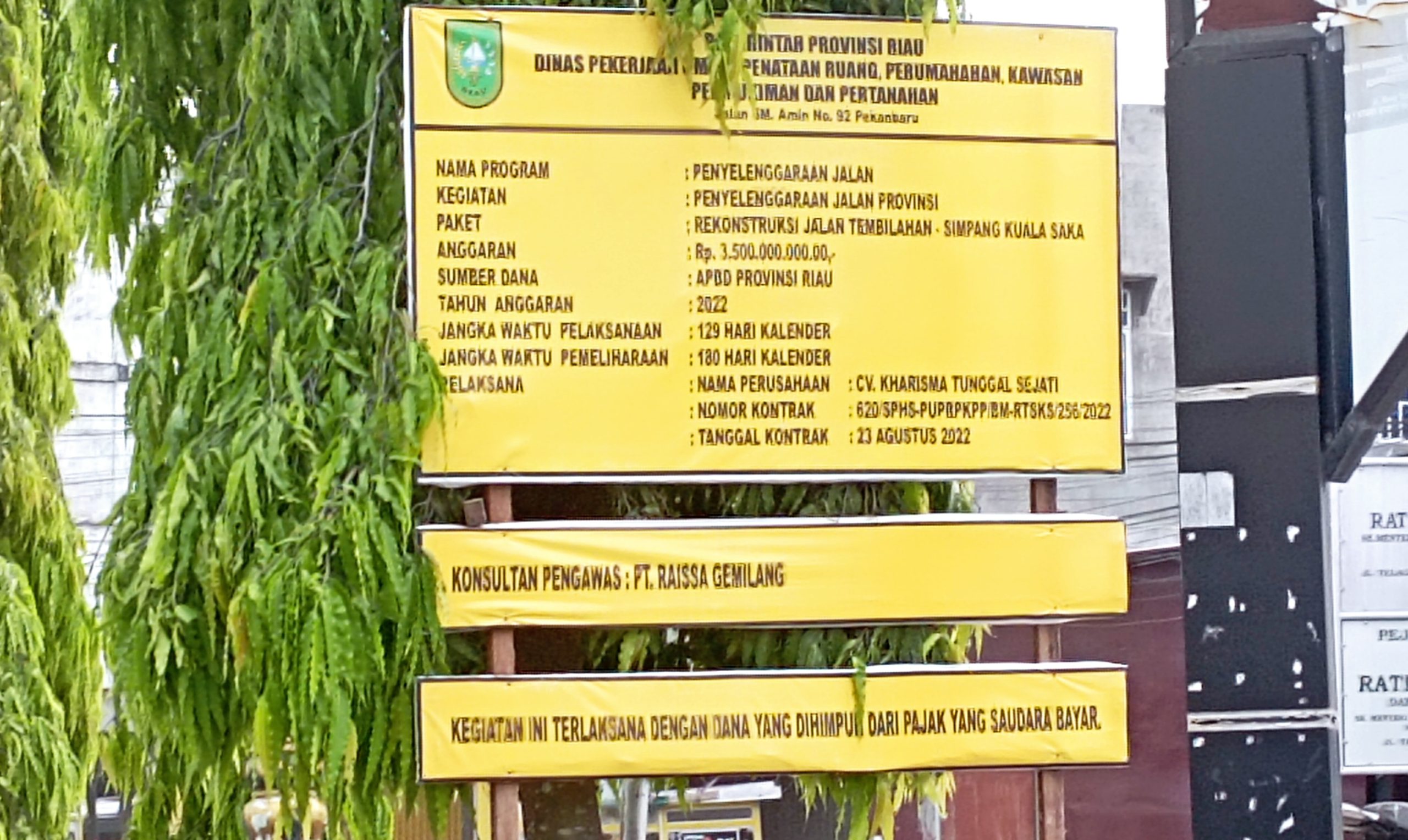 Padahal proyek yang memakan ABPD Provinsi Riau senilai Rp 3.5 Miliyar tersebut sudah dimulai sejak penandatanganan kontrak pada 23 Agustus 2022 lalu, dengan masa waktu 129 hari kerja.