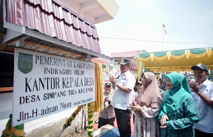 ARB INdonesia, INDRAGIRI HILIR – Bupati Indragiri Hilir (Inhil) H. Muhammad Wardan didampingi Ketua TP PKK Inhil Hj. Zulaikhah Wardan meresmikan Gedung Baru Kantor Desa Simpang Tiga Kecamatan Enok, Rabu (11/10/2023).