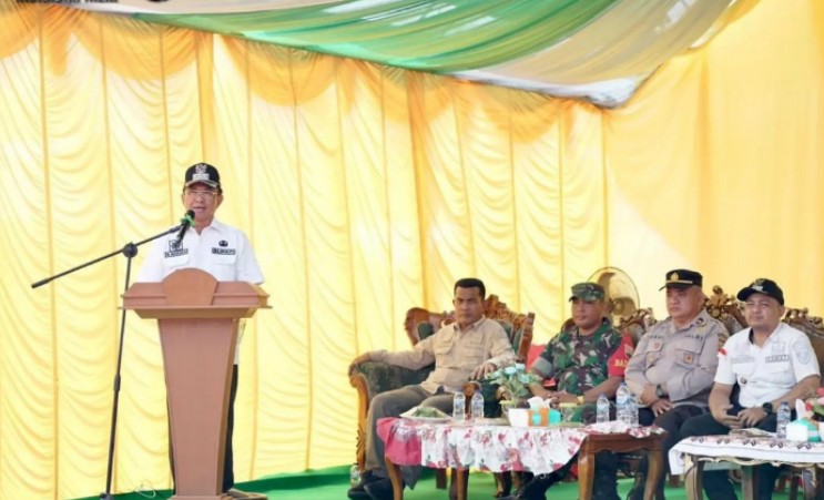 Turut mendampingi Bupati dalam kesempatan tersebut, Kadis PMD Inhil Dwi Budianto dan Kadis BPBD Inhil R. Arliansah, Camat serta Unsur Forkipimcam Kecamatan Enok, Kepala Desa se Kecamatan Enok serta tamu undangan lainnya. (Galeri Foto)