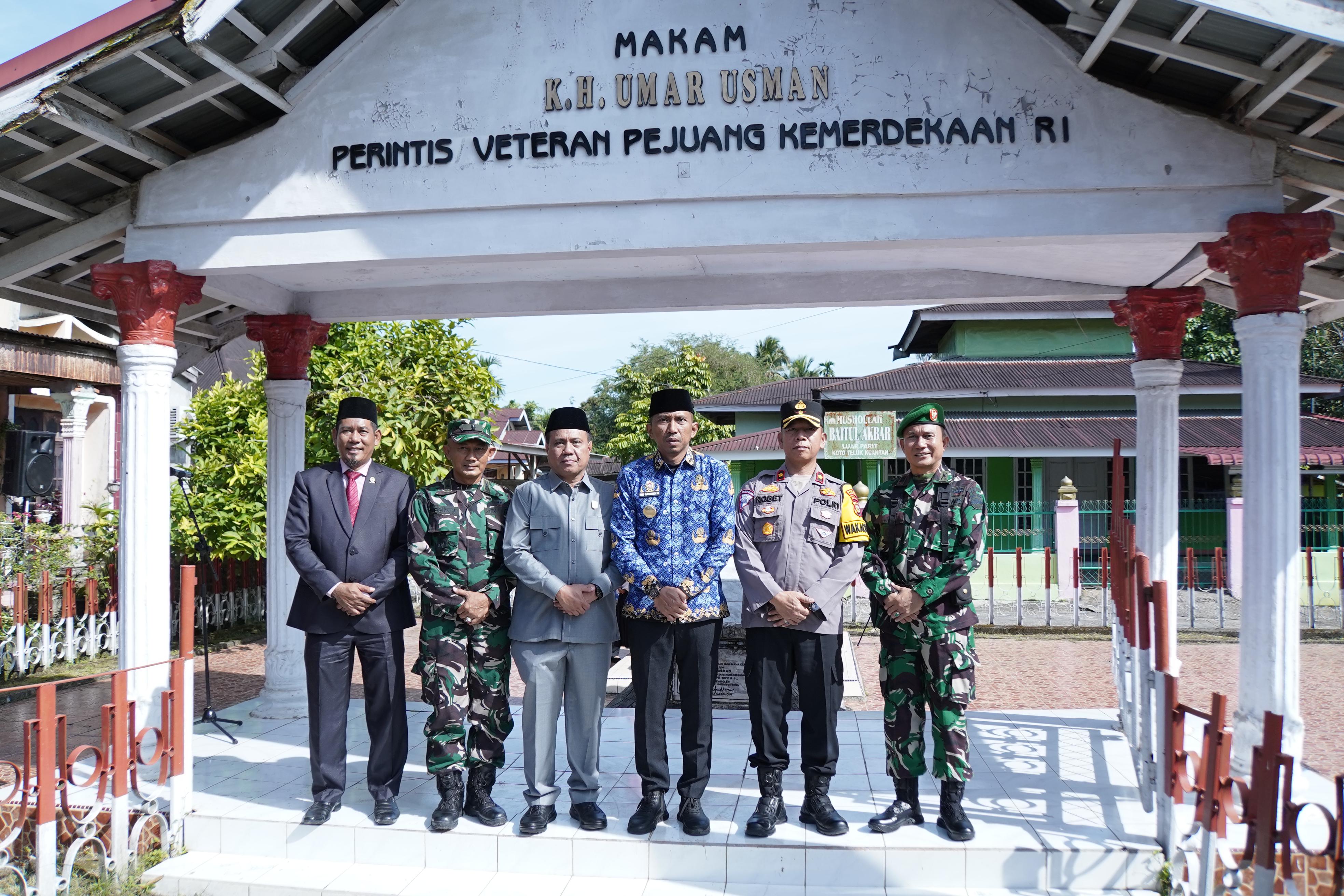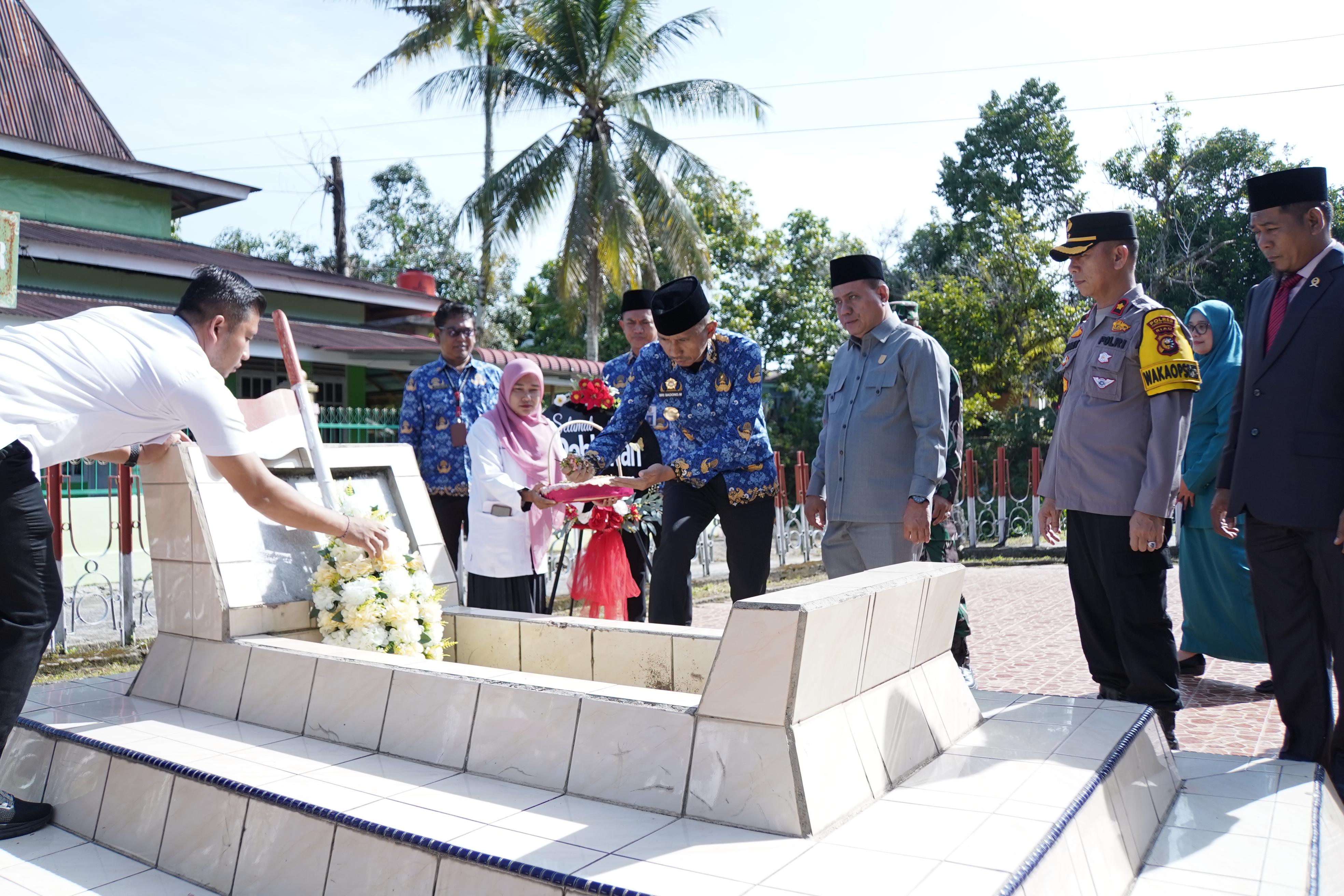 Usai upacara, momen peringatan Hari Pahlawan dilanjutkan dengan melakukan tabur bunga di makam pahlawan KH Umar Oesman Desa Koto Taluk, Kecamatan Kuantan Tengah.