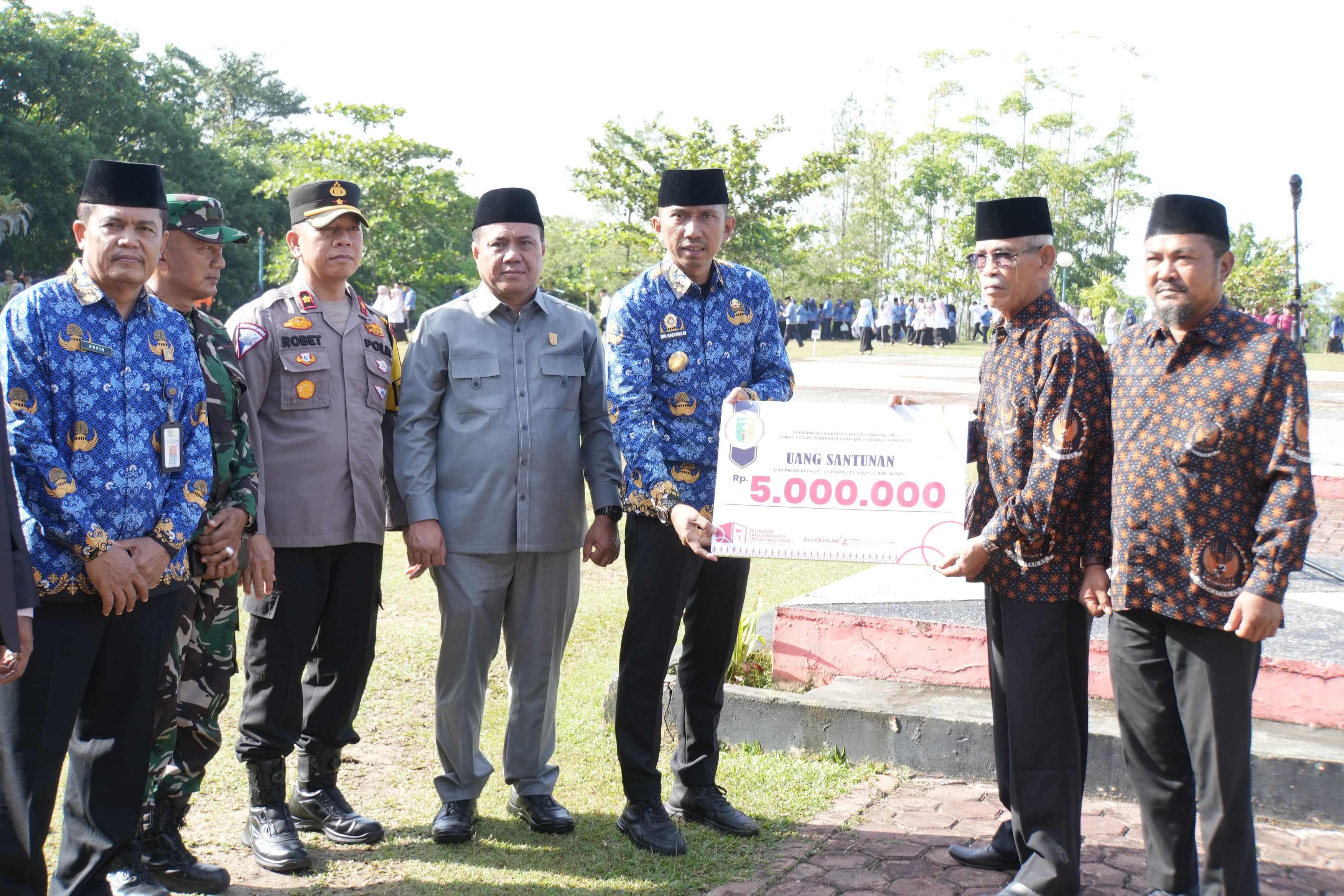 Pjs Bupati Kabupaten Kuantan Singingi drg. Sri Sadono Mulyanto,. MHan bertindak sebagai Inspektur upacara. Upacara itu pun dihadiri Pj Sekda dr. H. Fahdiansyah Sp. Og, Forkompinda serta seluruh ASN di lingkungan Pemkab Kuansing.