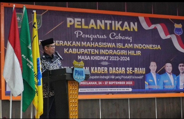 atas nama pemerintah daerah mengucapkan selamat atas dilantik dan dikukuhkannya PC PMII Inhil yang sebelumnya masih berstatus PC Persiapan. Pemkab Inhil juga mengapresiasi pengurus dan panitia atas kegigihan dalam memperjuangkan keberadaan PMII di Kabupaten Inhil.