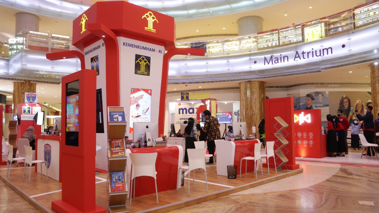 Selain pelayanan pada unit utama, dilaksanakan juga pameran pelayanan pub lik Kemenkumham secara serentak di Kantor Wilayah Kemenkumham di seluruh Indonesia dengan mengedepankan protokol kesehatan.
